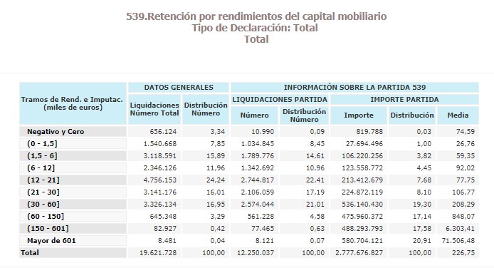 El capital mobiliario conforma la mayoría del ahorro, ya que incluye el pago de intereses proceden de depósitos, bonos, obligaciones y, en general, títulos de renta fija, así como los dividendos de acciones y las plusvalías obtenidas por la transmisión de cualquier tipo de valores mobiliarios percibidos durante el ejercicio fiscal.