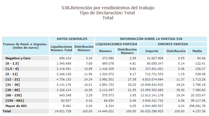 Dejando a un lado las rentas derivadas de alquileres y actividades económicas, dentro de esa cuantía cabe distinguir, a su vez, entre dos tipos de ingresos que conforman el grueso de la base imponible: trabajo y ahorro. Este reducido grupo de contribuyentes abonó unos 5.890 millones de euros por las rentas del trabajo, el 9,8% del total, a una media de 64.400 euros por cabeza, mientras que la tributación sobre el capital mobiliario recaudó algo más de 1.000 millones de euros en 2016, el 38,5% del total, lo que supone una media de 11.700 euros por declarante.