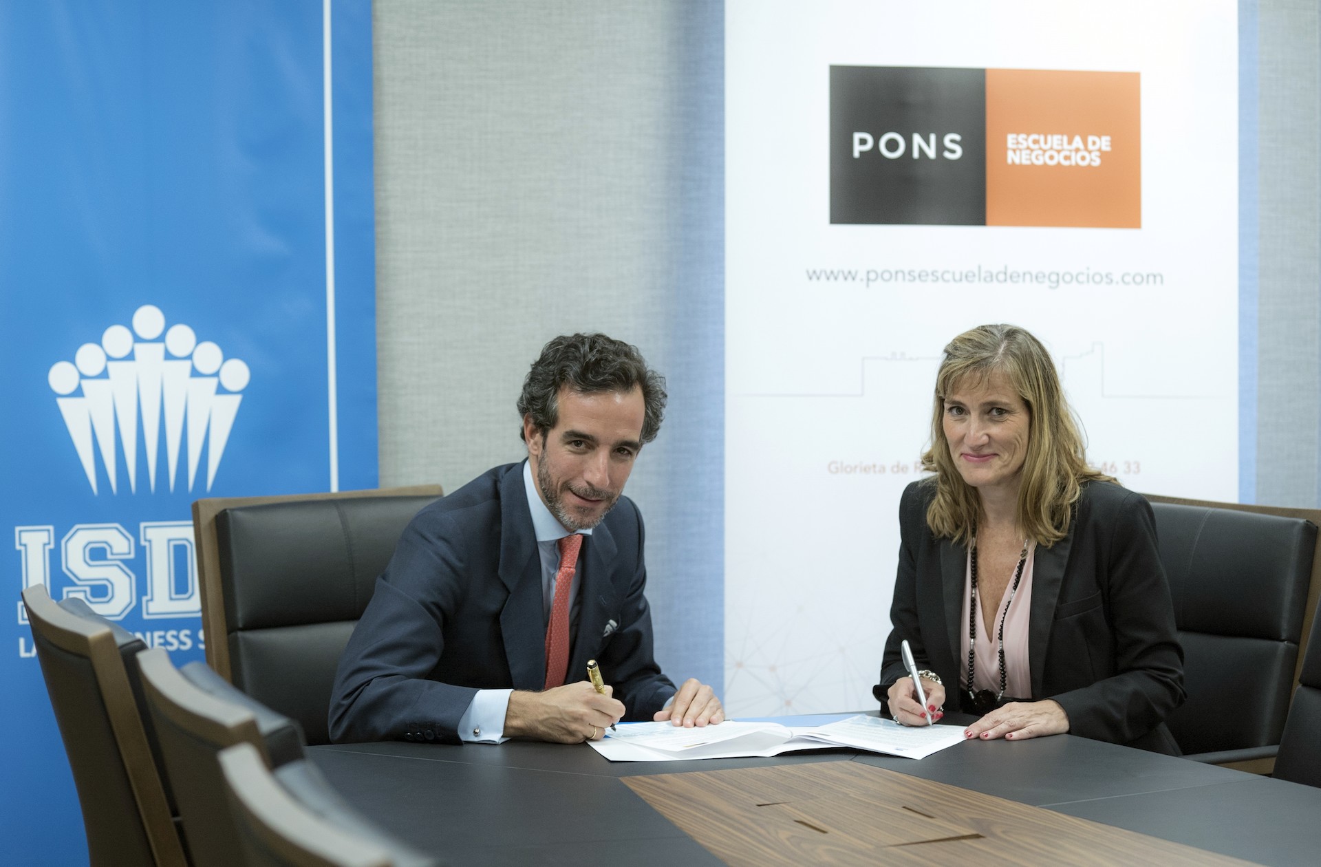 PONS Escuela de Negocios, división de PONS especializada en soluciones de formación y gestión para el sector empresarial, e ISDE, institución especializada en formación jurídico económica del más alto nivel, han firmado un acuerdo de colaboración para impartir y promocionar de forma conjunta los programas Máster de Propiedad Industrial, Intelectual, Competencia y Nuevas Tecnologías y el Máster en Gestión y Representación de Artistas y Deportistas. El acuerdo, efectivo desde el inicio del Curso 2018-2019, suma ambos programas a la amplia oferta formativa de ISDE en Másteres de postgrado de especialización principalmente a en los ámbitos jurídico, fiscal y financiero, y se impartirán en la nueva sede de la escuela de la Calle Serrano 208 de Madrid, con más de 7.500 m2 de campus disponibles para los alumnos.