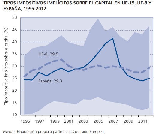 La imposición sobre el capital (29,3%), por su parte, es similar a la de la UE-8 (29,5%).