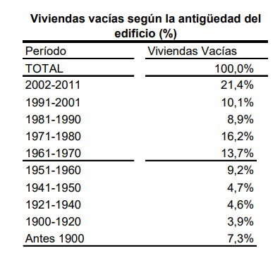 En segundo término, porque más de 1,5 millones de inmuebles vacíos (44%) tiene más de 50 años, lo cual reduce, igualmente, la posibilidad de ser alquilados. Tan sólo el 40% tiene menos de 30 años de antigüedad (1,36 millones).