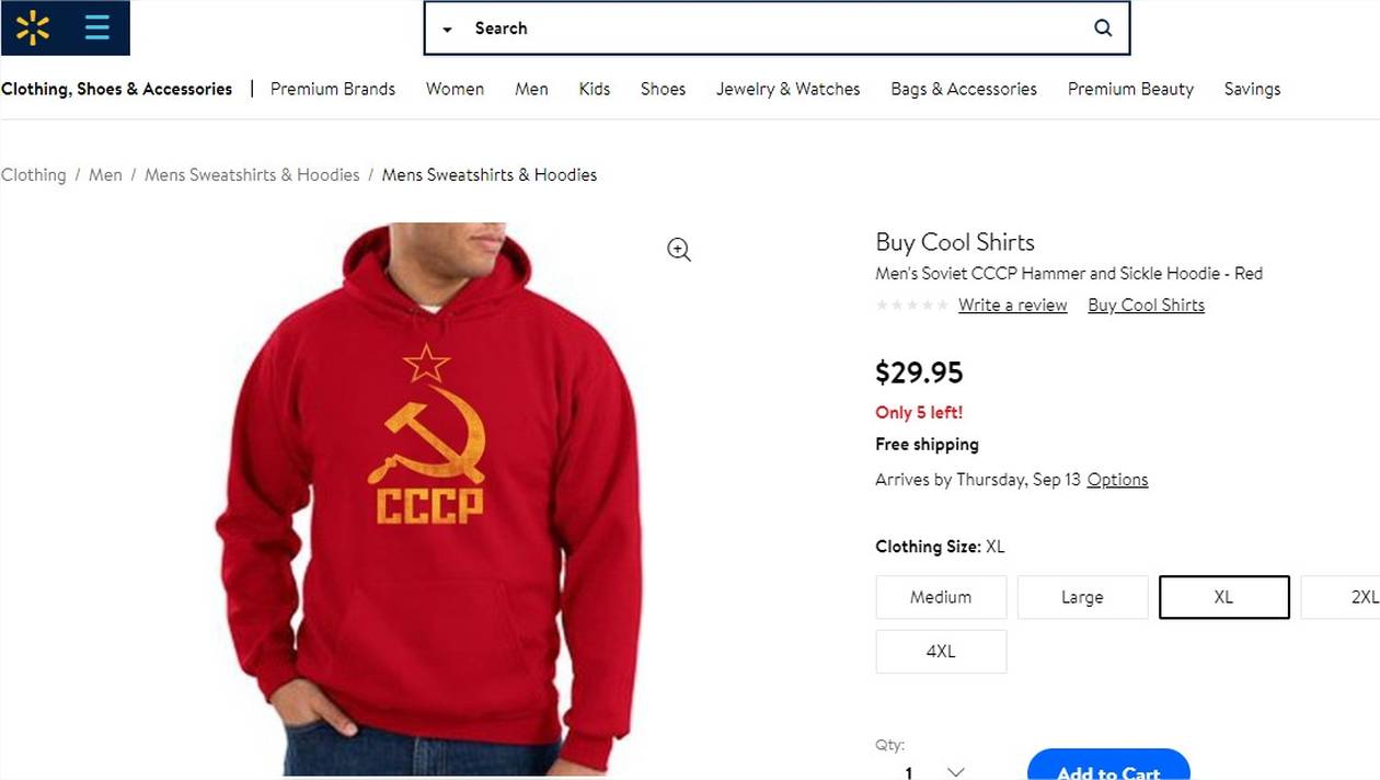 Walmart cuenta con tiendas en 28 países, pero ninguna de ellas en los estados bálticos u otros países que estuvieron bajo el yugo soviético. Sin embargo, comprar estos productos podía hacerse de manera online. En su tienda se podían comprar sudaderas y camisas con el símbolo de la hoz y el martillo y con las letras "CCCP", que hacen referencia a la URSS. Las sudaderas se podían adquirir por menos de 30 dólares y las camisetas por 18 dólares.