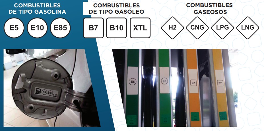 - E5: son combustibles que llevan un máximo del 5% de etanol. "Aquí están las Gasolinas 95 y 98 y serán etiquetas las más comunes", apunta García.