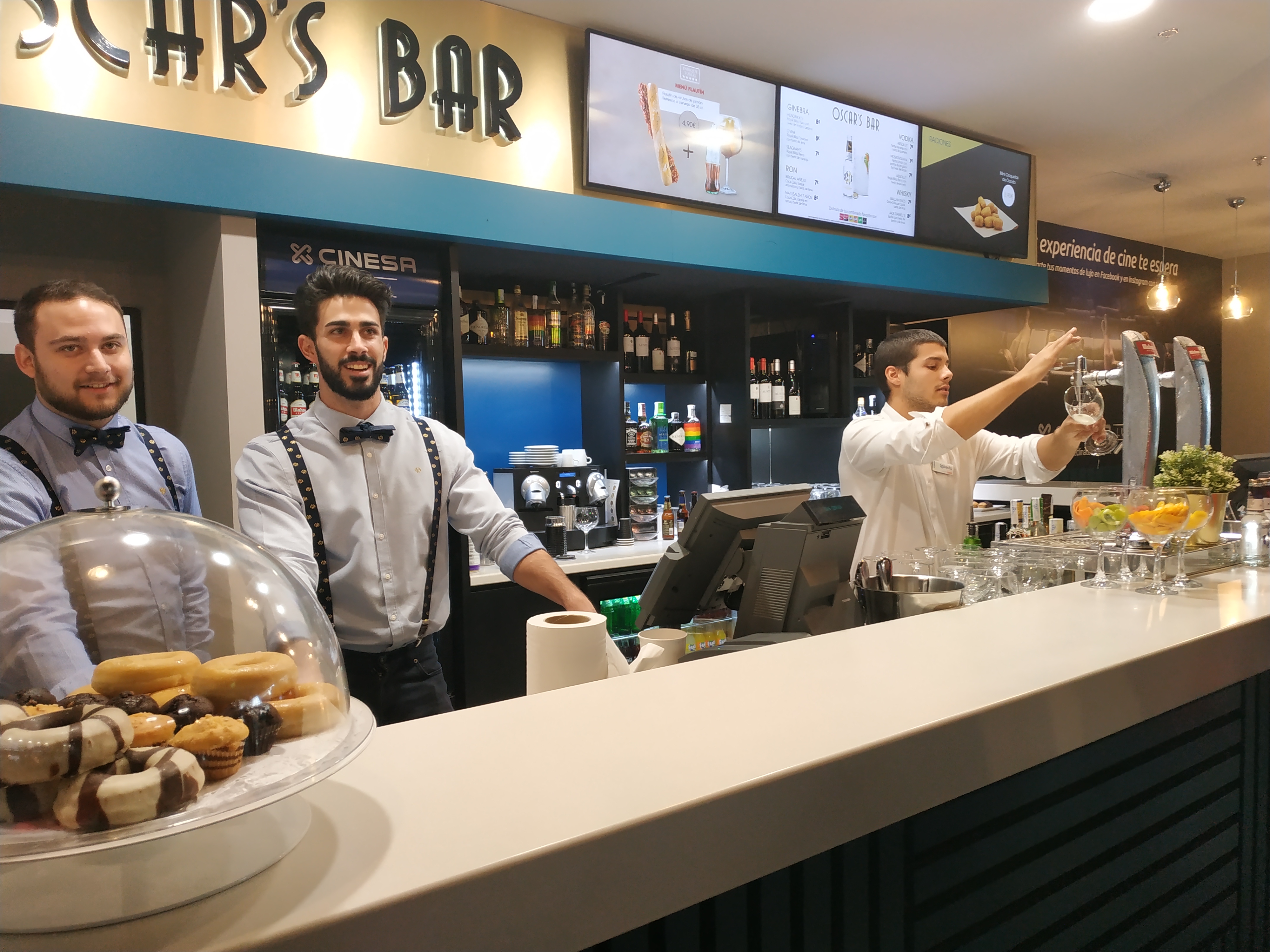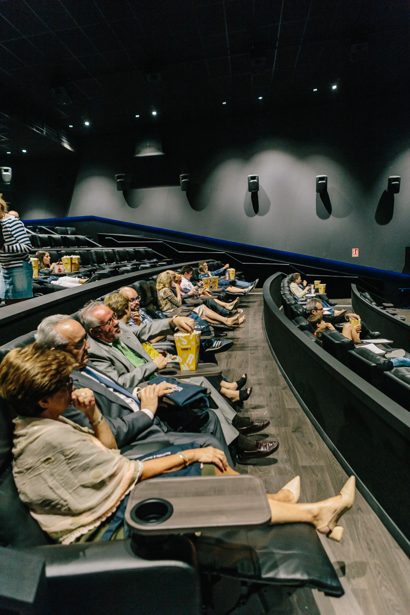 La mesita individual que tenemos incorporada en cada confortable sillón invita a consumir algún plato o bebida. Observamos cómo la máquina de palomitas de los mostradores de la entrada sigue ahí, pero en un plano secundario. Vino, vodka, cerveza, embutidos, muffins, sushi y un sinfín de productos gourmet se encuentran listos para ser servidos por los nuevos dependientes convertidos en camareros. ¿Ir de cañas al cine? Sí, es el nuevo planteamiento. Pero hay más, todavía queda saltar al futuro.