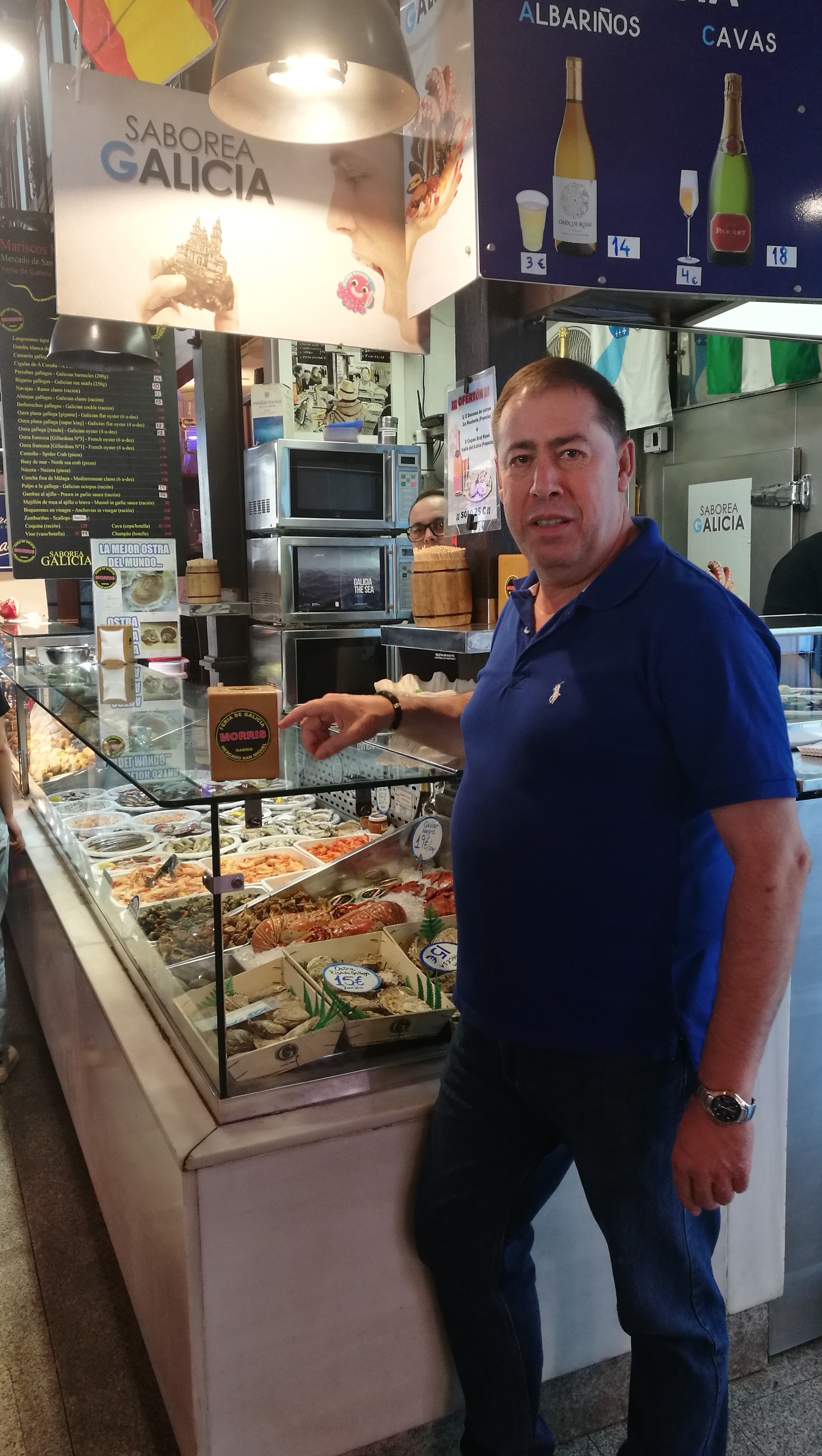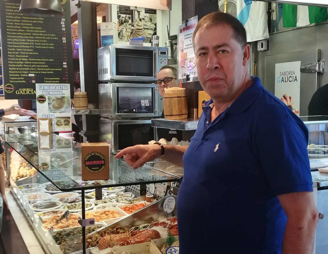 Bonales celebra la calidad de vida que ha ganado con la metamorfosis de su profesión . "Antes nos manchábamos y nos mojábamos las manos y ahora, ¡mira qué cosa más fina tenemos!", exclama. En la pequeña vitrina de su puesto, se agolpan las langostas, los percebes, las gambas y las zamburiñas. "Nuestro producto es muy fresco, de temporada y de mucha calidad", asegura. Detrás de la barra, tres empleados abren y preparan una montaña de platos de ostras que enseguida encontrarán quien les hinque el diente. El éxito del nuevo Mercado de San Miguel ha llevado a El Morrís ha contratar a 9 personas y a necesitar un local en la calle aledaña al edificio "donde preparamos todos los platos".