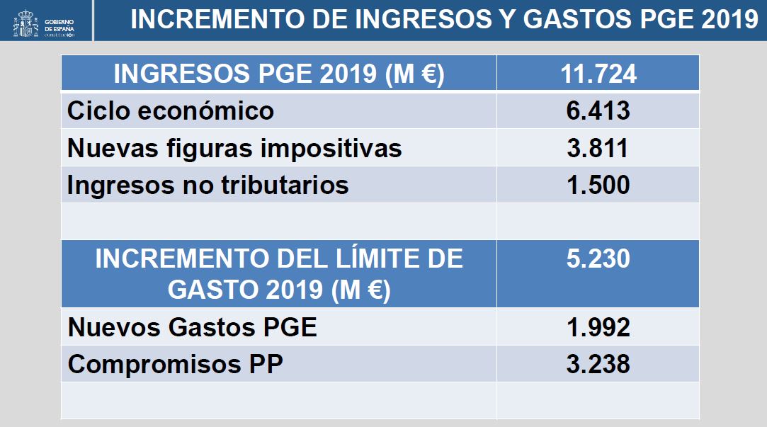 ¿Es imposible conseguir esa recaudación extra? No, pero tampoco será nada sencillo. Por ejemplo, de 2016 a 2017, creciendo por encima del 3%, la recaudación del conjunto de las administraciones públicas creció en 20.000 millones. Y este año, con un crecimiento también superior al previsto y una recaudación más elevada de la que se pronosticó en los Presupuestos, el Gobierno espera un incremento de 25.000 millones. Para el año que viene, pese a la ralentización, se sube la apuesta en lo que hace referencia a los ingresos. Desde Hacienda se recuerda que hay previstas varias subidas de impuestos y la creación de nuevos tributos que, calculan, pueden incrementar la recaudación en casi 6.000 millones de euros: aunque la historia nos dice que las previsiones de ingresos de los nuevos impuestos casi siempre son mucho más optimistas que las cifras finalmente obtenidas de los mismos.