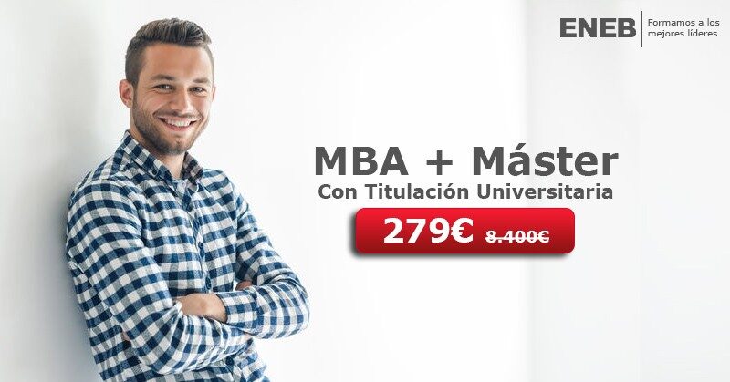 • MBA - Máster en Administración y Dirección de Empresas. Título propio de ENEB + Diploma Universitario por la Universidad Isabel I con 60 créditos ECTS.