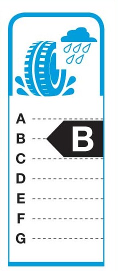 Otra de las partes que se destacan en el etiquetado de los neumáticos es la adherencia en superficie mojada, también llamada distancia de frenado sobre suelo mojado. Se trata de la distancia necesaria para pasar de 60 Km/h a 20 Km/h medida en línea recta en una carretera mojada.