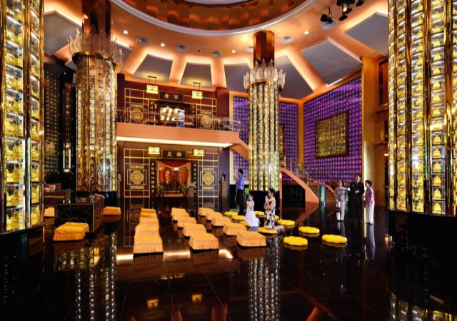 Es el primer cementerio que combina la cultura china con elementos de la religión budista. Humo, luces led, sistemas eléctricos con botones simulan el paraíso al que debe entrar el fallecido. Se accede con tarjetas magnéticas y su inversión en 2011 fue de 22 millones de dólares.