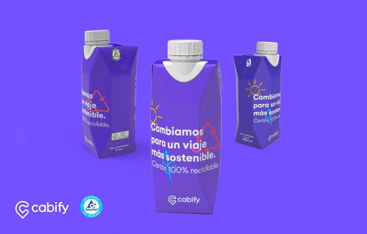 Cabify ha incorporado en sus vehículos en España agua envasada en cartón en sustitución de sus tradicionales botellas de agua, una de las señas de identidad más populares de su servicio de movilidad. A partir de este miércoles, los usuarios encontrarán este nuevo envase de agua en cada trayecto.