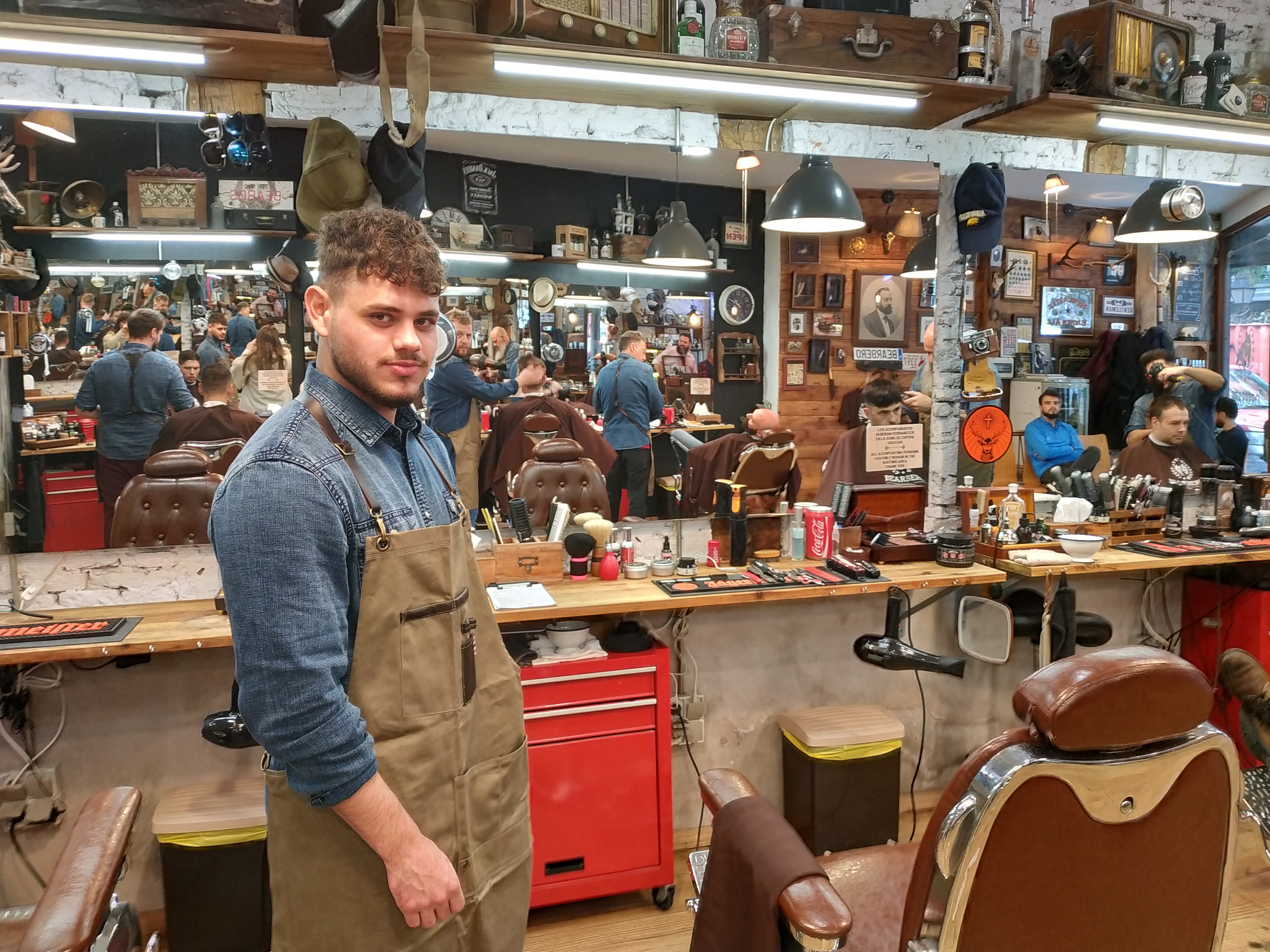 Mientras tanto, no dejan de entrar hombres por la puerta. Una máquina de cervezas se encuentra en la zona de espera. "A los hombres les encanta una cerveza para la espera o mientras los arreglan", confiesa entre risas el fundador del local. Al otro lado, Elías ya está terminando el corte a Juan. Raya al lado y un estilo muy de principios del veinte. "Se llevan los cortes de pelo de la época de la Ley Seca en Estados Unidos, son muy varoniles y, además, nos benefician a los peluqueros masculinos", aclara.