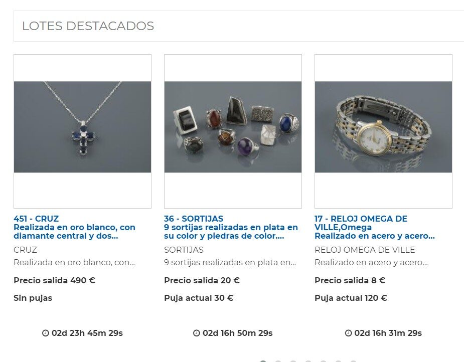 Se trata de artículos de plata (colgantes, pulseras, pendientes, cadenas y sortijas), cuyo precio de salida es a partir de 10 euros, además de gafas de sol de marca y/o diseño desde un euro y relojes desde tres euros.