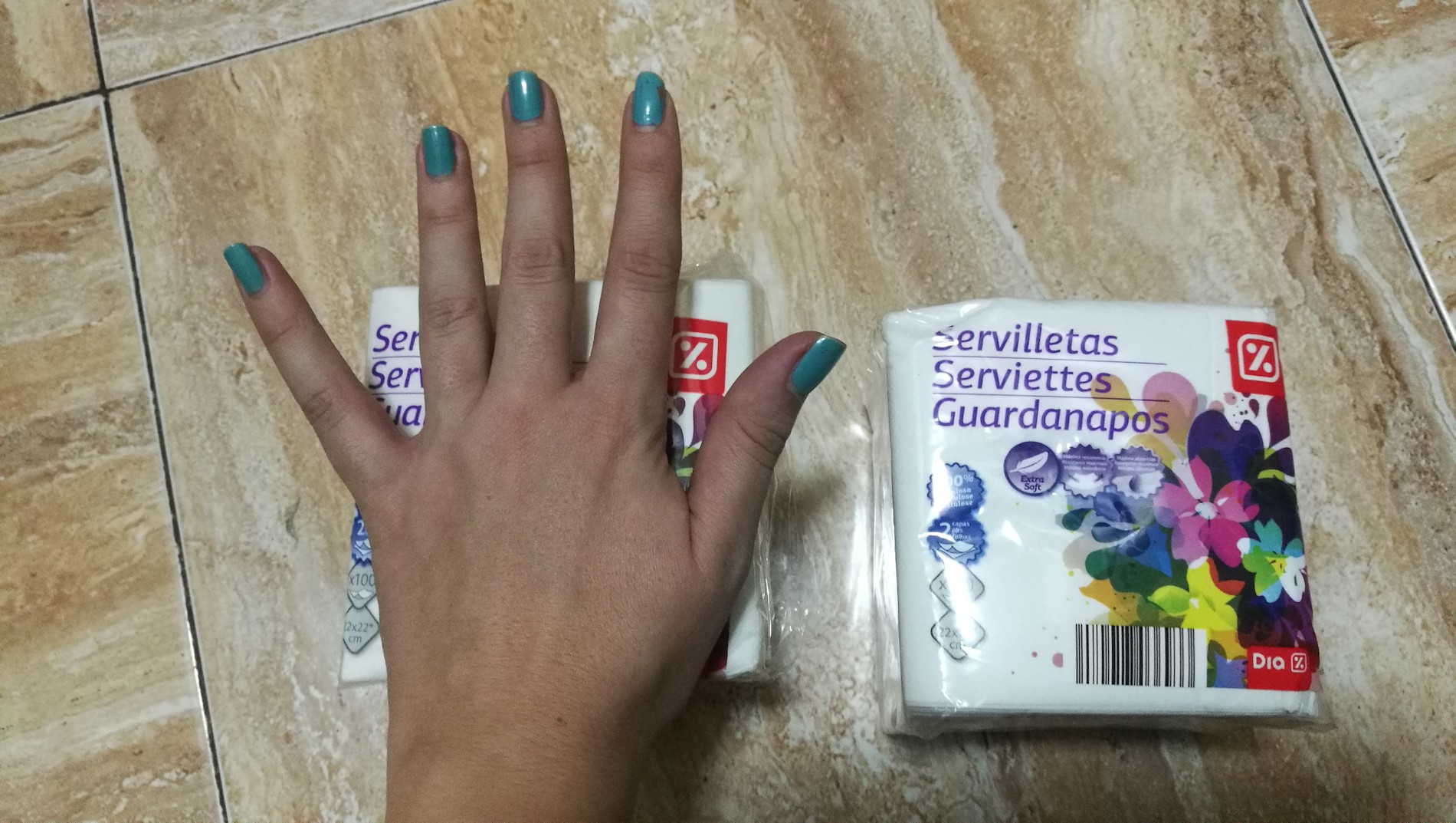 Bien, bien, bien... ¿y estas mini servilletas? La primera sorpresa ha venido cuando las servilletas que me han traído serían las que usaría un liliputiense. Lo cierto es que la culpa es mía, debería haberme fijado en la medida de la descripción del producto, pero el efecto de verlo en la pantalla me hizo creer que tendría un tamaño normal.