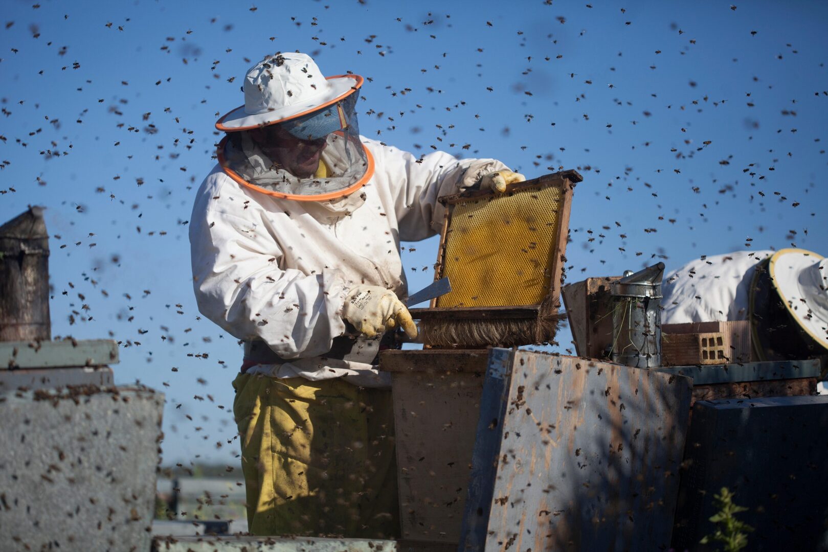"Es una situación catastrófica que amenaza nuestra supervivencia. Todavía tenemos miel de la cosecha pasada sin vender a pesar de que producimos una de las mejores mieles del mundo. La industria envasadora ha dejado de comprarla porque prefiere abastecerse de importaciones de baja calidad de terceros países como China. Pueden vender un bote de miel con un 99% de fuera de la UE y con un 1% de dentro, y nada se lo impide", ha lamentado Ángel Díaz, responsable del sector apícola de COAG.