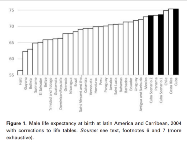 En el estudio, estos economistas nos enseñan cómo quedaría el ranking con diferentes ajustes y, tras eliminar todas las trampas usadas por el régimen cubano, se estima que la esperanza de vida para hombres en Cuba dista mucho del excelente puesto del que presumen.