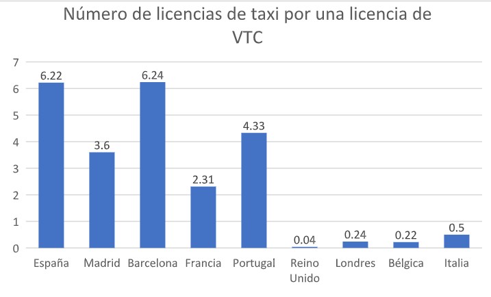 Y no es precisamente España, desgraciadamente, el paradigma de la liberalización de este sector. Si nos comparamos con otros países de la UE, comprobamos que el mayor número de taxis por VTC se da en nuestro país, con lo que en el resto hay muchas más licencias de VTC compitiendo.