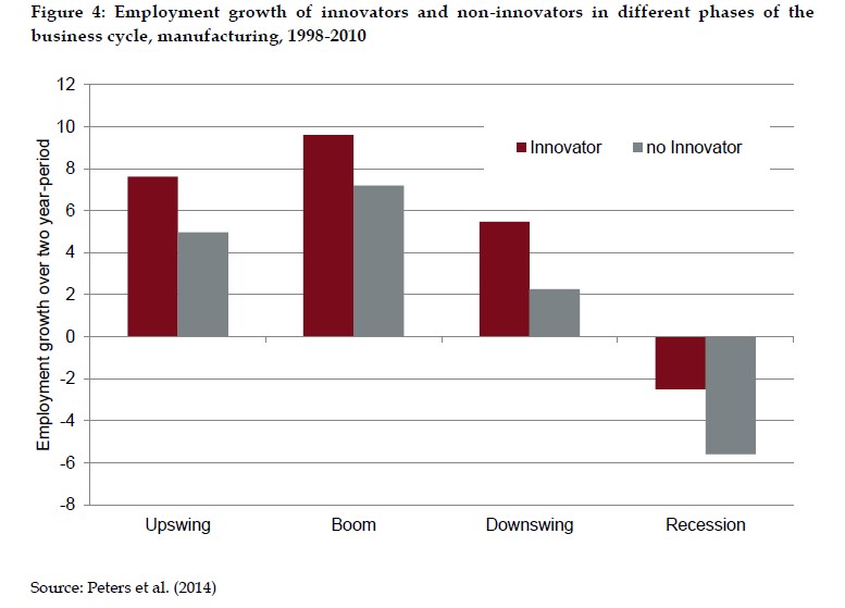 No en vano, entre el 43% y el 57% de los nuevos puestos de trabajo creados en India, Malasia y Filipinas durante los últimos 10 años provienen del sector TIC. Un estudio de la Unión Europea en 2014 demostró que las empresas innovadoras se comportan mejor, en términos de crecimiento de empleo, en todas las fases del ciclo económico. Son capaces de crear más puestos de trabajo en las fases alcistas y destruyen menos empleos en las fases recesivas.