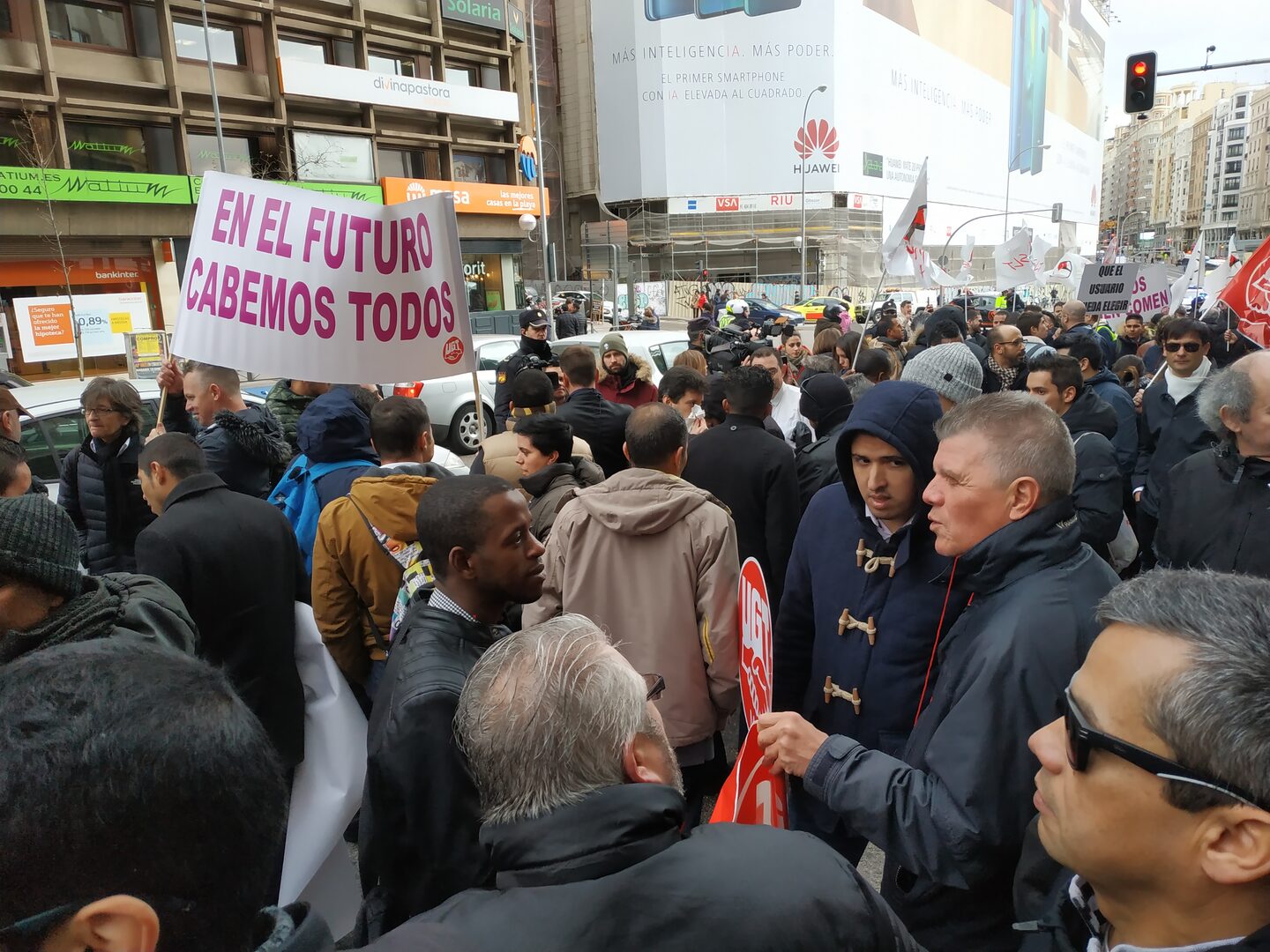 Inmigrantes procedentes de países del Este, Latinoamérica, África e India se concentran con indignación y claman protección al Gobierno de Pedro Sánchez. Del presidente dicen que les ha abandonado a su suerte en las calles. Entre los asistentes hay una gran mayoría de hombres mayores de 50 años, muchos rozando la edad de jubilación, mujeres divorciadas a cargo de hijos e hipotecas, grupos de chicos jóvenes de etnia gitana... Todos coinciden en que Uber los ha "salvado".
