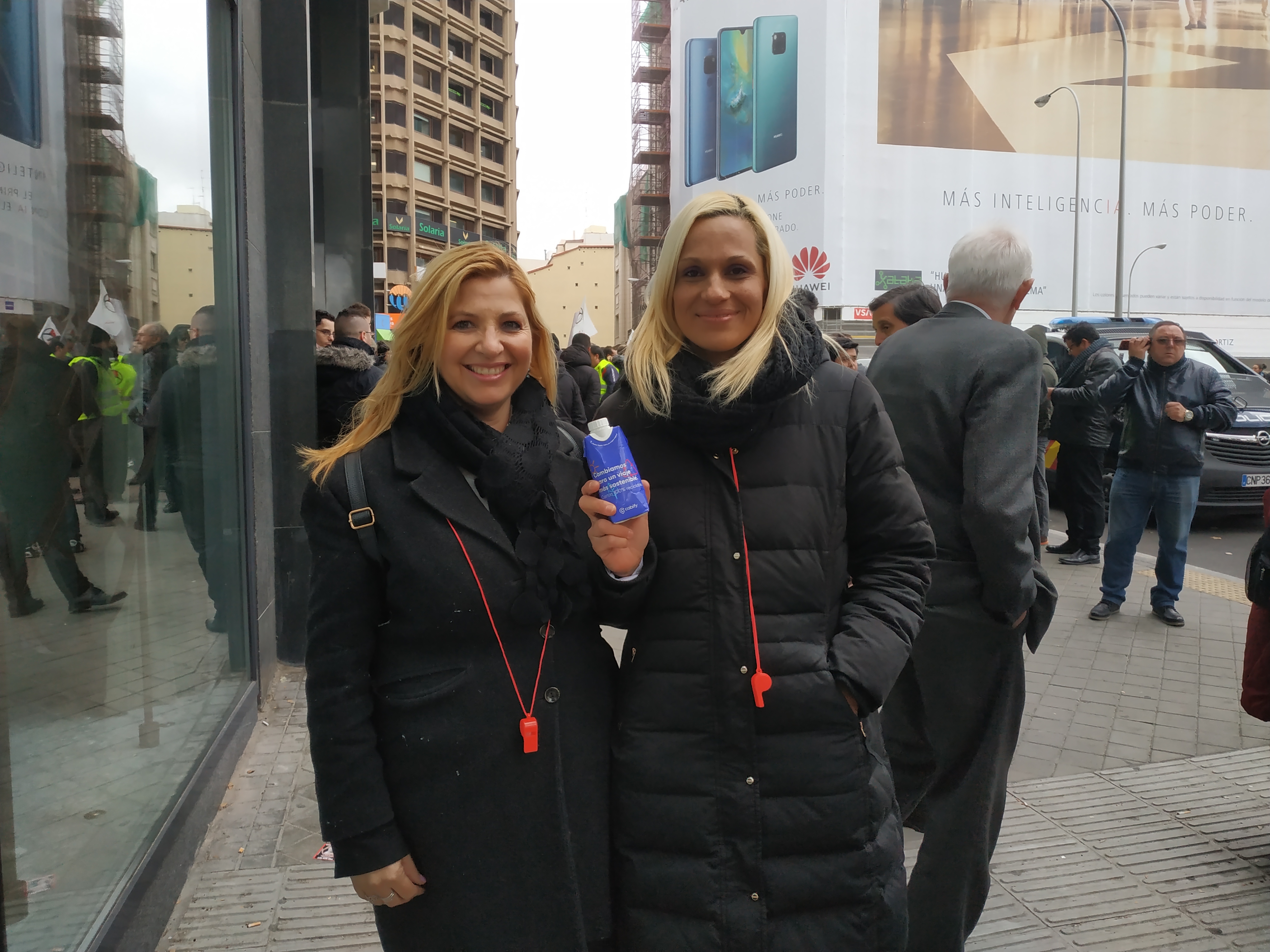 Deborah camina hacia la sede del PSOE con su compañera Paqui Sánchez, una exadministrativa de Badajoz que llegó a Madrid para salir del desempleo y encontrar estabilidad económica: "Es una barbaridad lo que nos hacen los taxistas. Yo me pongo nerviosa trabajando cuando veo un taxi porque te pueden hacer lo que quieran. Te pegan frenazos para que te estrelles en la carretera", denuncia.