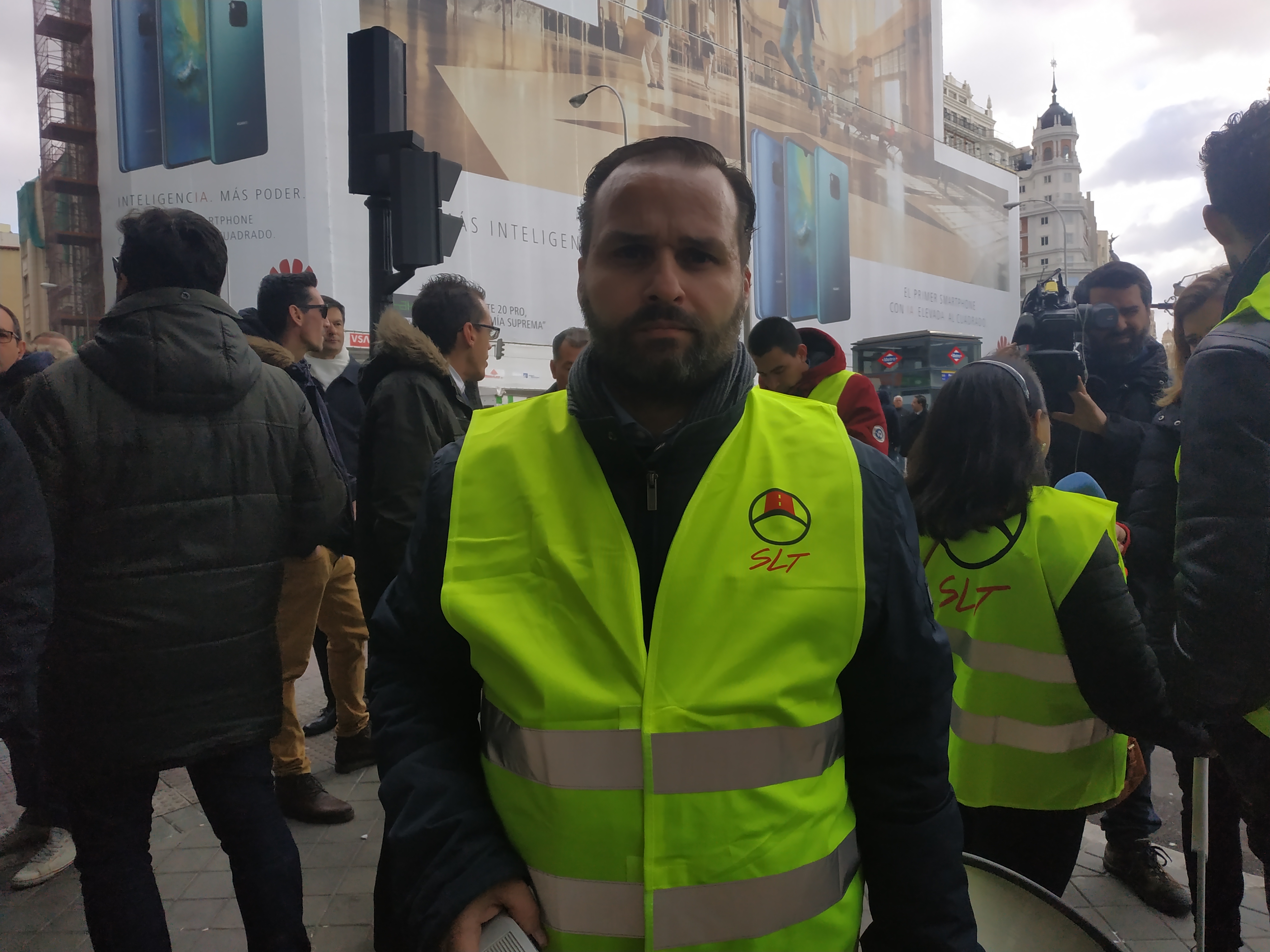 "Nuestra carta de presentación no es el agua, ni el wifi, ni la radio, ni el aire acondicionado que llevamos en los vehículos. Nuestra carta es la calidad humana, la educación que mostramos a nuestro clientes, el respeto, la amabilidad, todo lo que los taxistas no tienen ni han tenido con nosotros", reclama con el altavoz en la mano Alcántara.