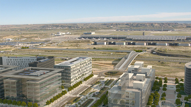 para la Comunidad de Madrid. Un área estratégica por su cercanía a uno de los aeropuertos internacionales más importantes del mundo. Valdebebas Fintech District estará, cuando finalicen en los próximos meses las obras del puente de conexión, a tan sólo 3 minutos del aeropuerto.