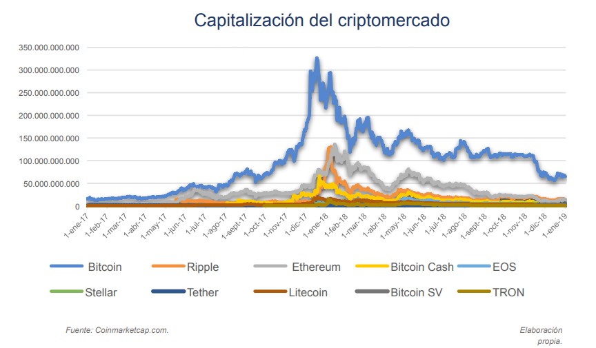 Solo en el último trimestre de 2018, la capitalización del criptomercado se redujo de 223.000 millones de dólares a 125.000 millones, lo que supone una caída del 44%. El mes de noviembre fue el peor del año para las criptomonedas, con una depreciación de la capitalización cercana al 36%.