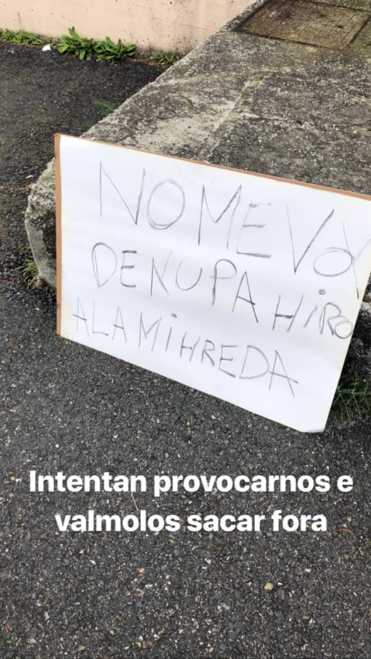 El presidente de la Asociación de Vecinos Gatos Roxos, Jaime Gueimonde, lidera estas protestas para visibilizar la injusticia de unas leyes "que favorecen a los usurpadores". "Estamos desolados. De las cinco viviendas, hemos conseguido pactar con dos familias y liberar dos propiedades. Por suerte, avisamos a la Policía y no les dio tiempo a hacer morada, se les hicieron las compras en el supermercado y se fueron. Pero de las otras tres viviendas, ya han dicho que no se van. Y hasta se ríen de nosotros y ponen carteles con mensajes desafiándonos", describe.