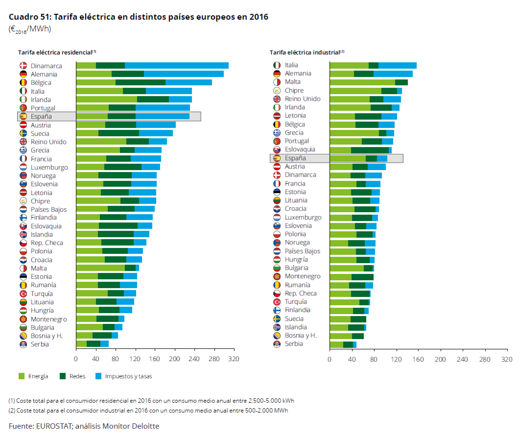 España se encuentra entre los países líderes en términos de precio de la electricidad pagada por ciudadanos y empresas. Todo un logro para nuestro gobierno socialista y su sucedáneo Podemos, vistas sus últimas propuestas.