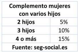 También existe un reconocimiento a progenitores (en este caso a ambos) para reconocer como años cotizados aquellos dedicados al cuidado de los hijos (se puede llegar a reconocer hasta 5 años de cotización).
