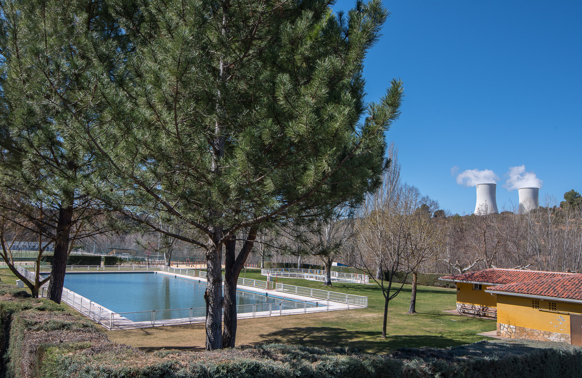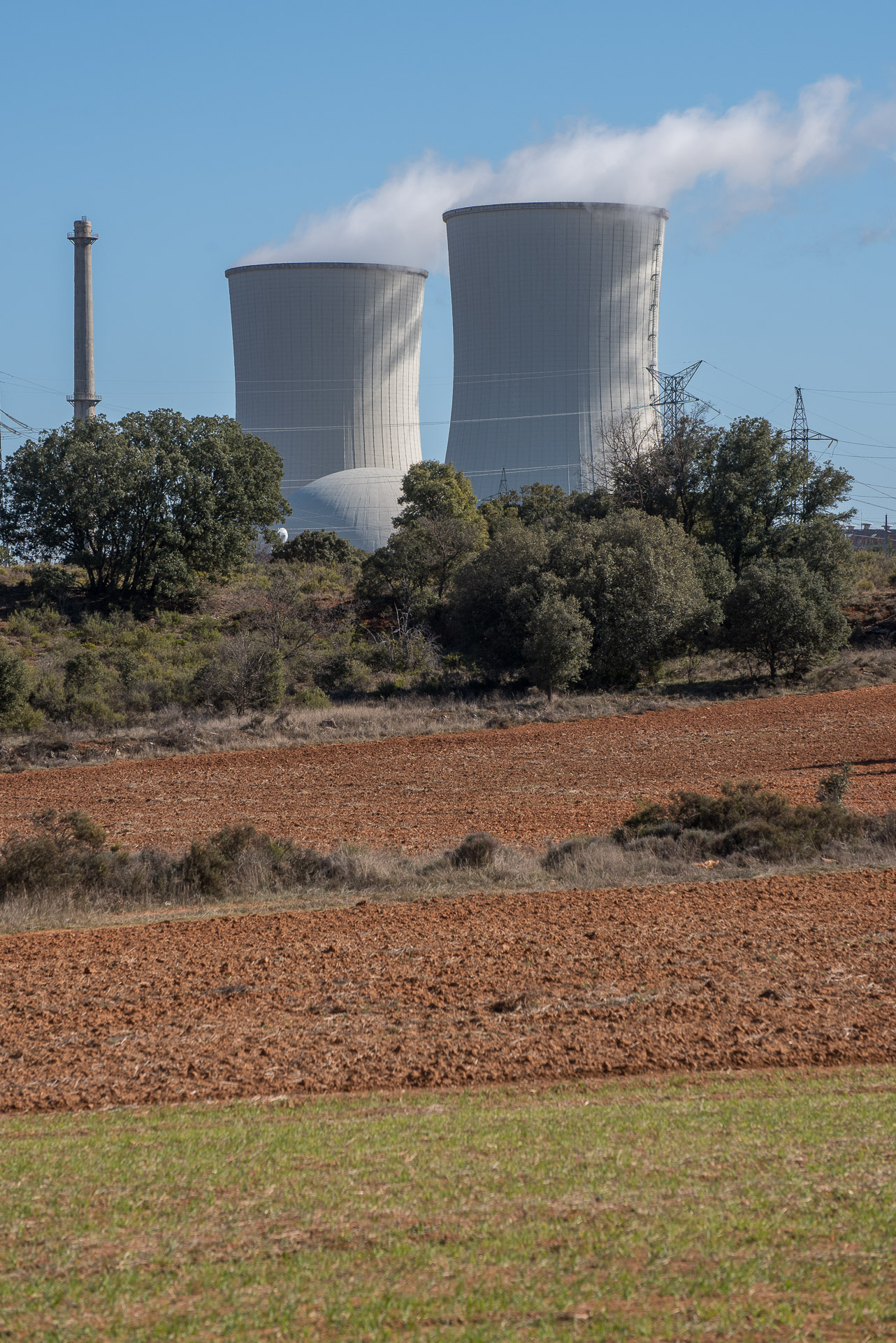 Parte de la central está en una pequeña depresión, por lo que para ver la cúpula del edificio de contención del reactor hay que acercarze bastante.