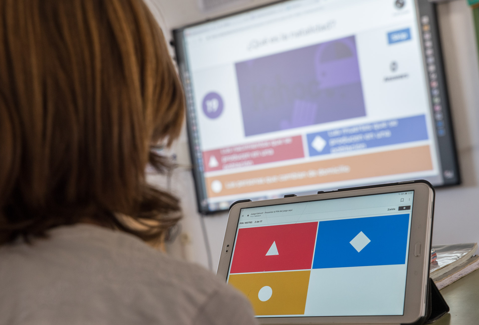 Los niños disponen de juegos educativos en los que interactuan con la pizarra digital desde sus tablets.