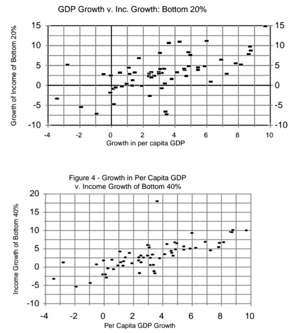 Además, concluye que "países que experimentaron un rápido crecimiento económico, como Hong Kong, Corea, Malasia e Indonesia, vieron crecer la renta per cápita del 20% y 40% más pobre de su población significativamente".