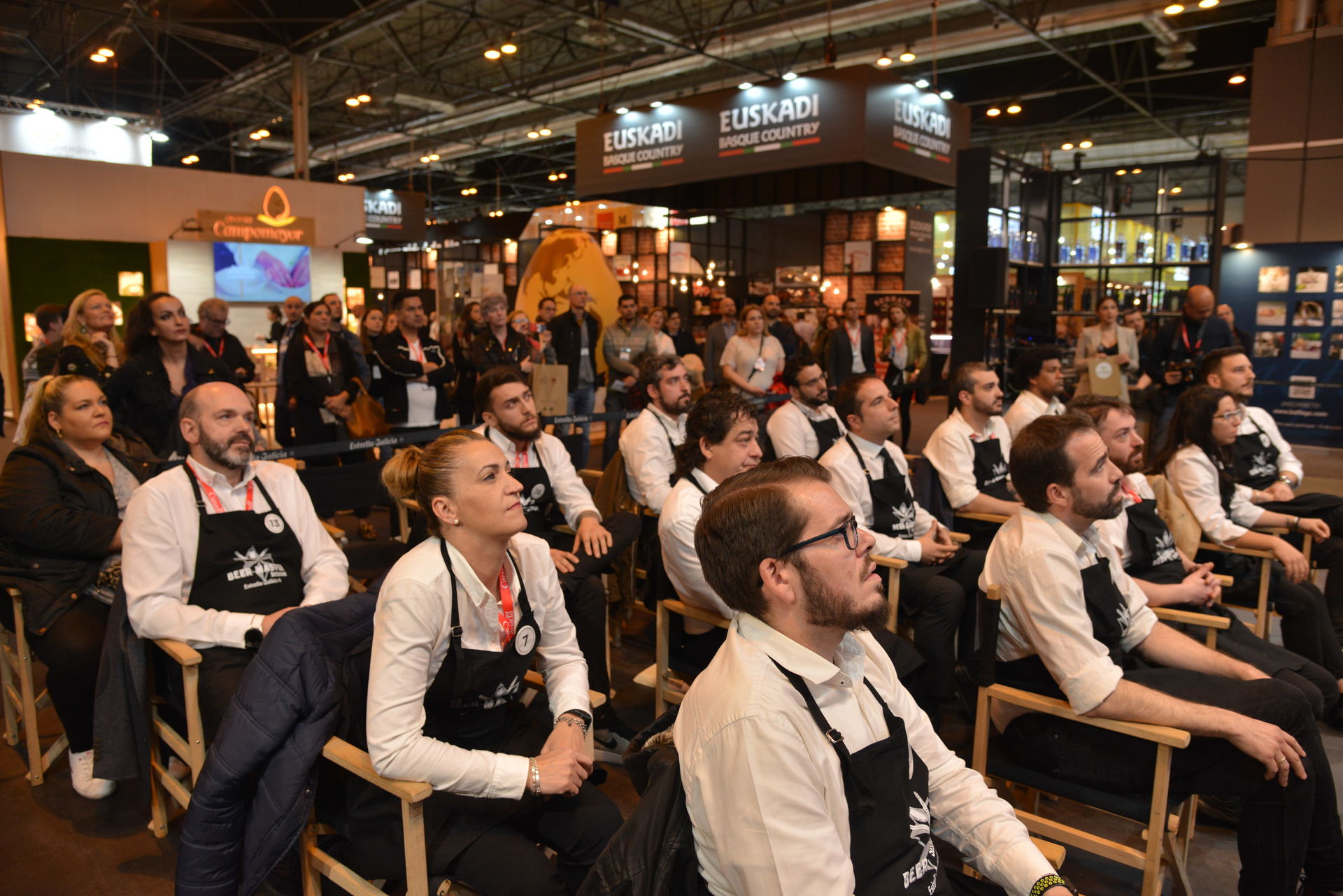 Más allá de las triunfantes nueces californianas, se suceden una pasarela de alimentos que hacen la boca agua. La gente se agolpa porque aquí pueden participar al estilo televisivo MasterChef. El restaurante de Teruel El Batán saca pecho con alimentos de la tierra: boletus Albarracín, queso añejo, flor de polen de trufa y huevos ecológicos que parecen, por sus dimensiones, de una gallina gigante.