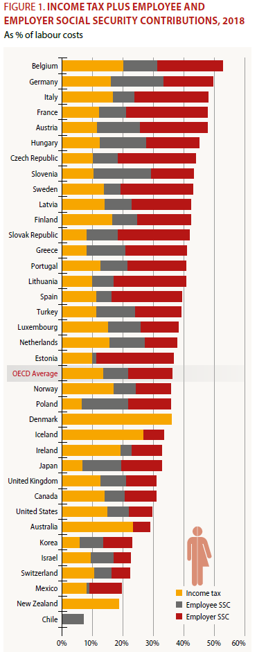 Hace escasos días también se publicó el informe Taxing Wages 2019, en el que España no sólo continúa estando marcadamente por encima de la media de la OCDE en términos de brecha fiscal (diferencia entre lo que el trabajador percibe y lo que realmente le cuesta al empresario), sino que la evolución es divergente. Es decir, mientras en la OCDE la brecha fiscal disminuyó en 2018, en España aumentó.
