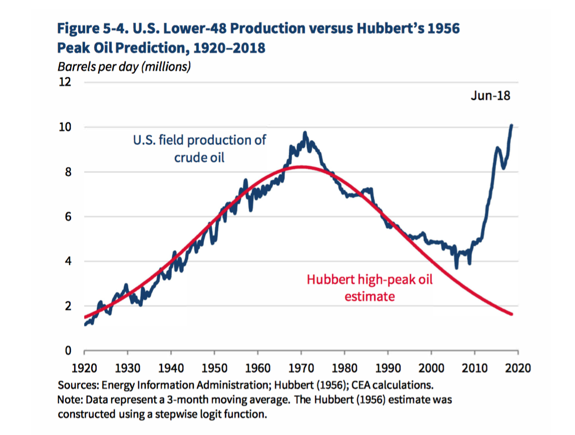 No hay que olvidar que, allá por los años 50, Marion King Hubbert popularizó la idea de que la producción petrolera de Estados Unidos tocaría techen los años 70, para después experimentar un declive lento pero continuado. Su predicción parecía cumplirse hasta los años 90, pero la consolidación de nuevos métodos productivos hizo que la curva siguiese un camino muy distinto en los años 2000 y, especialmente, en la década de 2010. Las tesis del peak oil que inspiraron a tantos economistas, políticos y ecologistas han sido refutadas por la innovación productiva del sector energético.