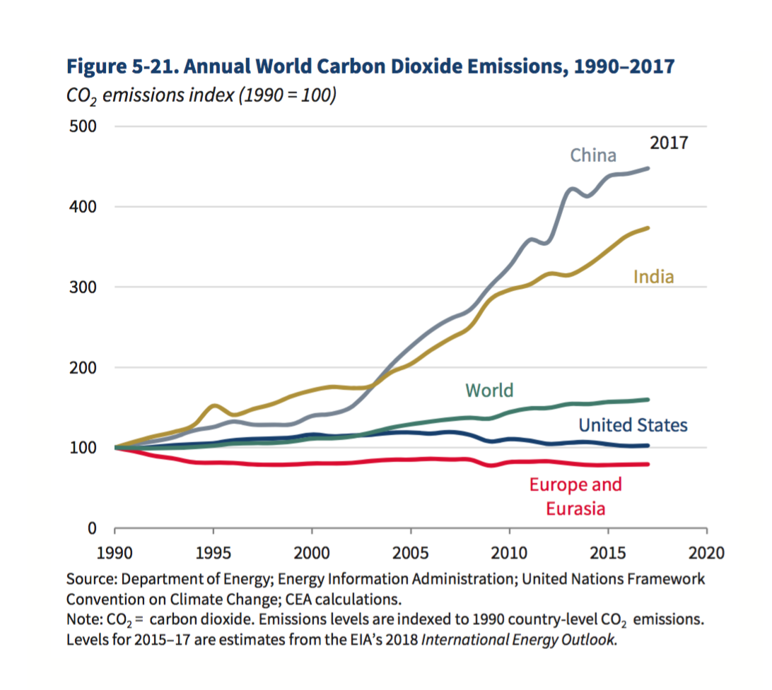 Además, las emisiones de CO2 se mantienen prácticamente congeladas desde 1990, mientras que en India o China se han multiplicado por 3,5 y 4,5, respectivamente.