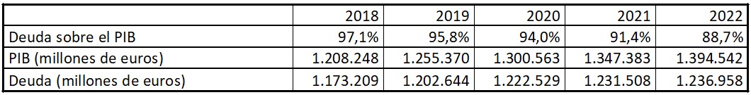 Eso hará que la deuda, pese a disminuir en porcentaje sobre el PIB gracias al crecimiento del PIB nominal, llegue a ser de 1,236 billones de euros en 2022.