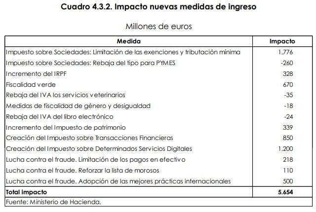 El impacto que tendrán estas medidas asciende, en promedio, a 1.000 euros de recaudación extra por contribuyente. Pero, ¿cómo va a hacer realidad estos planes el gabinete socialista? Uno de los puntos en los que se quiere centrar Sánchez son las distintas deducciones y bonificaciones del sistema tributario, que movilizan anualmente cerca de 60.000 millones de euros. Otra vía para el ajuste son gravámenes ya conocidos por el fallido plan de presupuestos para 2019, caso del recargo al diésel, la Tasa Google, el impuesto a las transacciones financieras, el aumento del Impuesto de Patrimonio o la subida del IRPF a rentas altas.