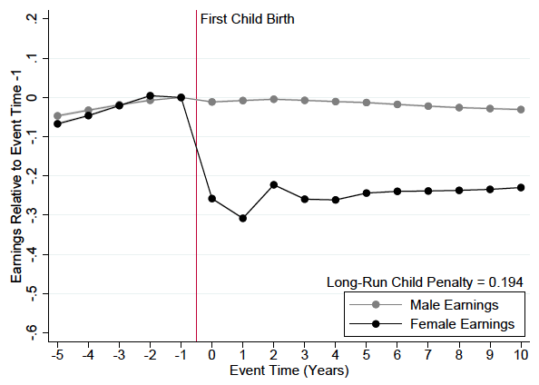 Un reciente trabajo de investigación realizado en Dinamarca demostró que hasta un 80% de la "brecha salarial" puede atribuirse a la reducción de ingresos que sufren las mujeres tras tener hijos. Resultados similares se hallaron en Austria, Alemania, EEUU, Reino Unido, Suecia y Noruega.