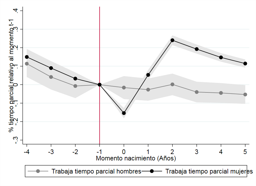 - Y, además, aumenta la probabilidad de trabajar a tiempo parcial.