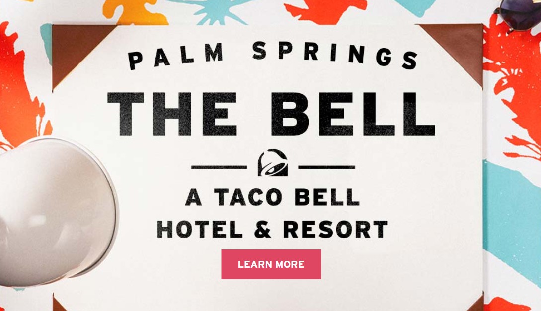 La cadena de comida rápida ha sorprendido con su nueva línea de negocio, que por el momento será algo temporal. Taco Bell ha anunciado que transformará un hotel y resort en Palm Springs (California) para crear The Bell: A Taco Bell Hotel and Resort. La compañía ha confirmado que la temática principal en la decoración será, cómo no, los tacos.