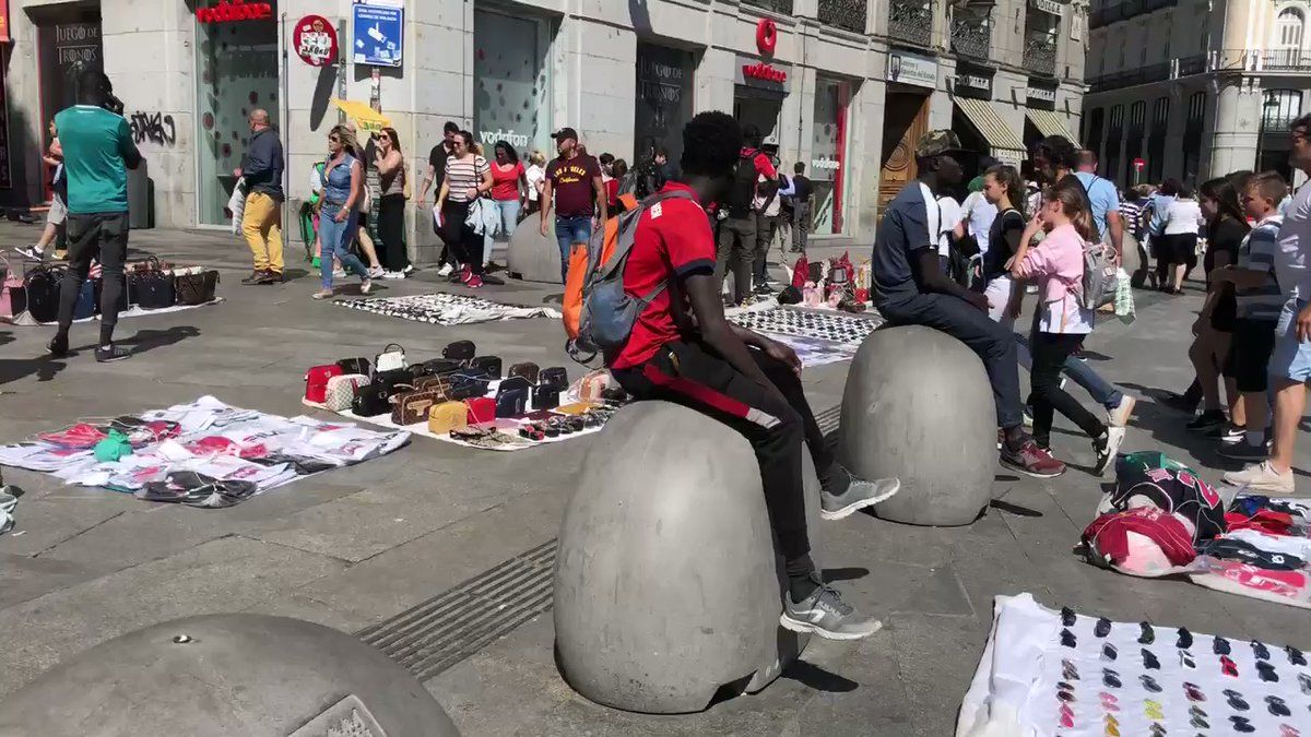 Un paseo por las calles de Madrid es suficiente para darse cuenta de que los manteros ofrecen sus falsificaciones en plena calle con total normalidad y tranquilidad. Las imitaciones son desde hace años un clásico, pero en los últimos años su presencia ha aumentado notablemente. Los comerciantes de la zona aseguran que el incremento se debe al efecto llamada: "Ven que no hay sanciones en uno de los puntos con más afluencia de gente de España, y para ellos es el paraíso".