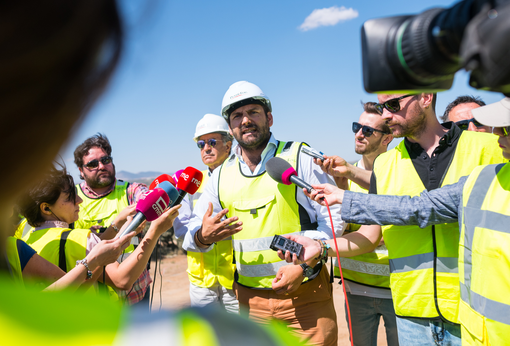 El recorrido ha estado dirigido por Erwan de la Villeon, consejero delegado de Puy du Fou en España, durante un paseo por las que serán las instalaciones del espectáculo nocturno El sueño de Toledo, joya de la corona del proyecto, que, por el momento, sólo cuenta con una estructura primaria repleta de obreros, unos 600, junto a camiones y grúas de 80 empresas del sector.