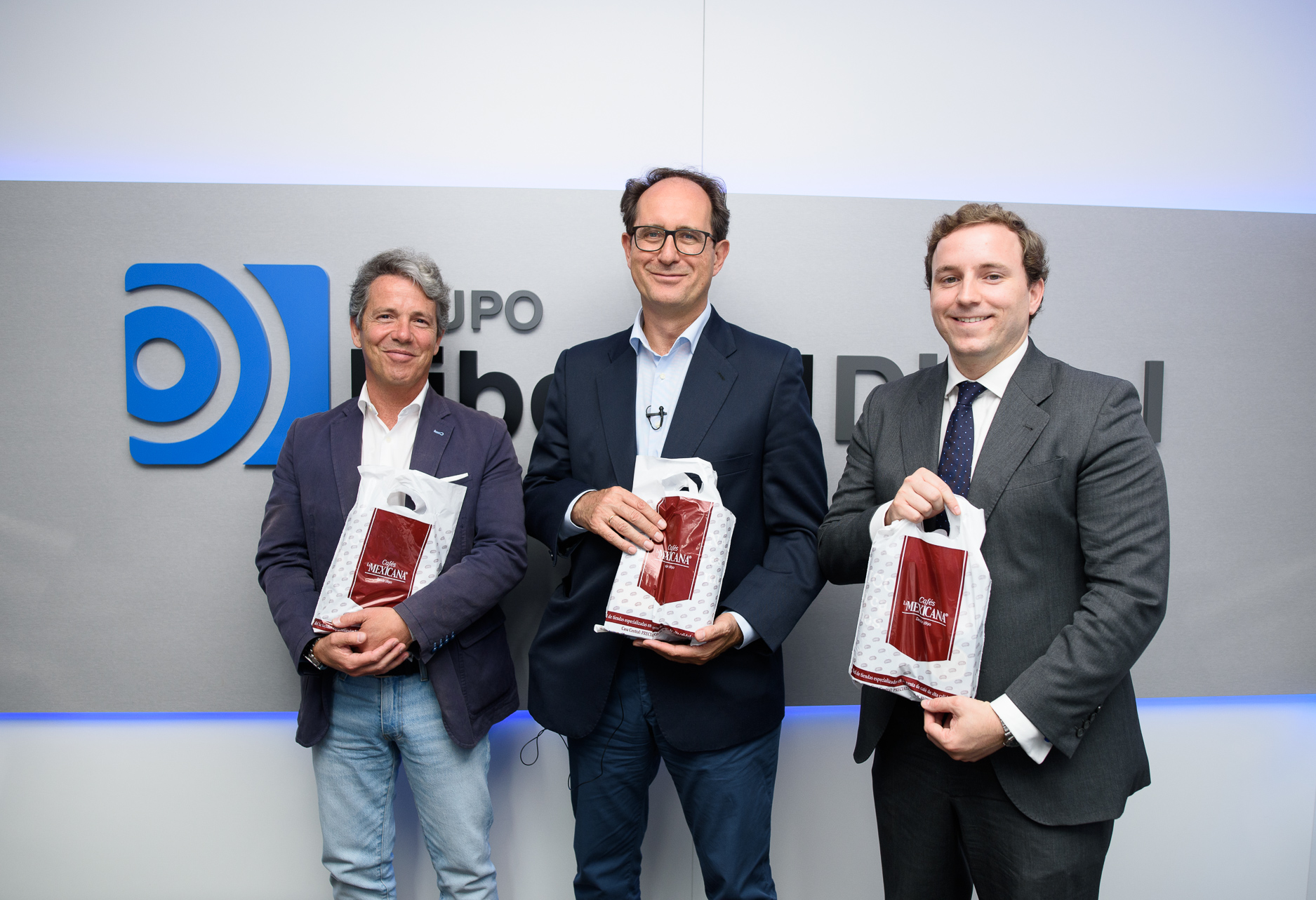 José María Artal, de Ibercaja, Sánchez Foncueva de Valdebebas, Ignacio Ortiz de Activum y Domingo Soriano analizan las claves del mercado inmobiliario en una nueva entrega de Diálogos en Libertad que ha ofrecido Cafés La Mexicana, quien ha entregado un pequeño obsequio a los ponentes al final del desayuno.