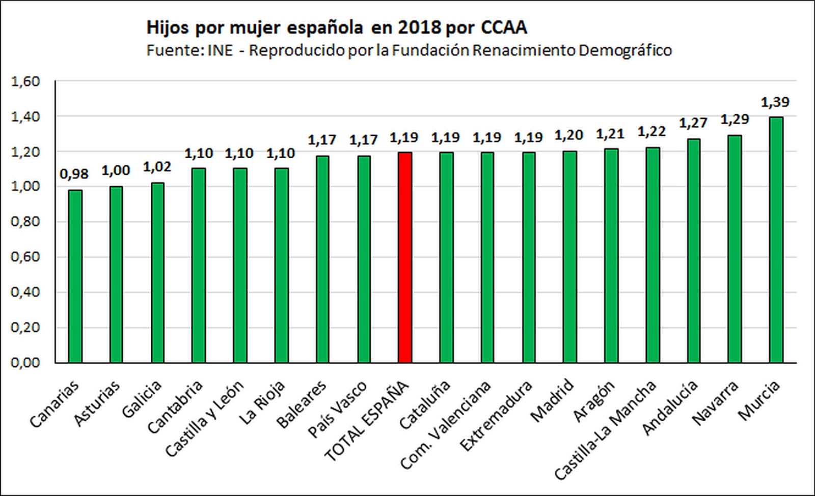 - En ninguna comunidad las españolas llegaron siquiera a 1,4 hijos por mujer.