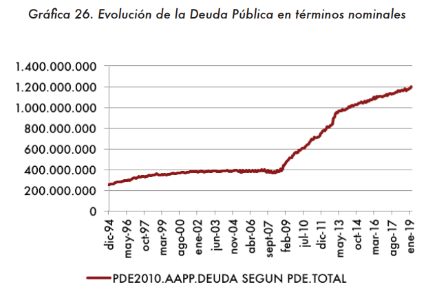 A esta carga adicional se suma, además, el coste de la deuda pública, cuya financiación exigirá el pago de mayores impuestos en el futuro. El actual nivel de endeudamiento público roza el 100% del PIB, superando los 1,2 billones de euros, lo que equivaldría a una carga extra de 61.618 euros por cada trabajador ocupado.