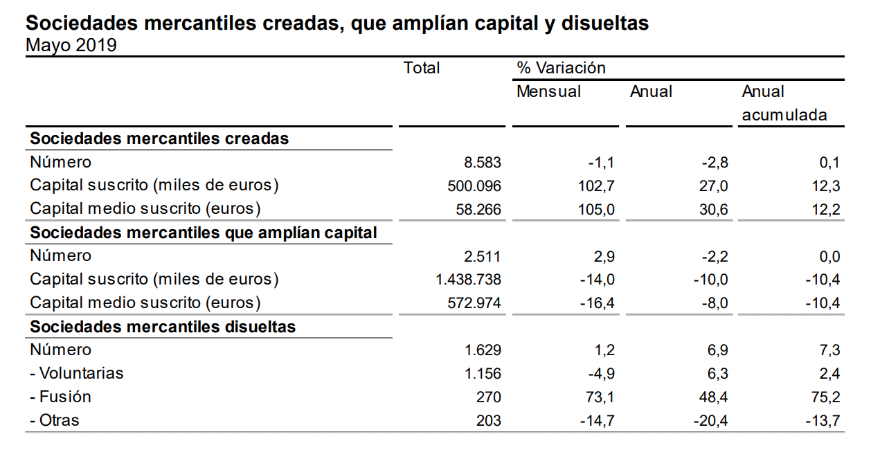 Durante el último año se han creado en España un total de 95.000 empresas. La cifra es similar al periodo anterior, de modo que no se ha producido un descenso significativo durante el último año, a pesar de la mayor incertidumbre derivada del cambio de gobierno y el intenso calendario electoral del segundo trimestre de 2019.