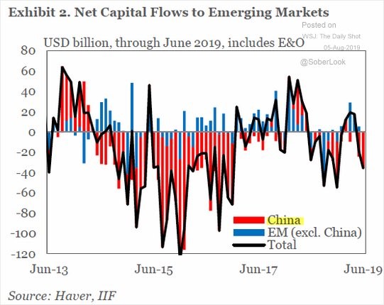 En China podría estar explotando la enorme burbuja generada durante los últimos años y la devaluación del yuan no es una herramienta para paliarla. El Banco de Construcción de China, el segundo banco más grande del país por activos en balance, ha firmado un acuerdo por valor de 291.000 millones de dólares (2 billones de yuanes) con el gobierno provincial de Hunan durante los próximos cinco años. Estamos hablando de una región en la que gobiernos locales, como Leiyang, ya estaban impaganado nóminas públicas, a pesar de un crecimiento del 7,2% en el primer semestre de 2019. Esto, a pesar de la emisión de 900.000 millones de yuanes emitidos en bonos sólo en el mes de junio, la cifra más alta desde julio 2016.