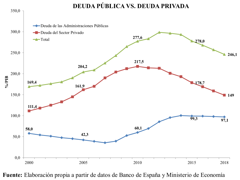 Tanto los gobiernos del PSOE como los del PP han desperdiciado el tiempo a la hora de eliminar una de las brechas más preocupantes de la economía nacional, el relativo al desequilibrio de las cuentas públicas y su elevado endeudamiento. España entró en la crisis de 2008 con un importante problema de deuda privada y sale de ella con otro, no menor, de deuda pública.