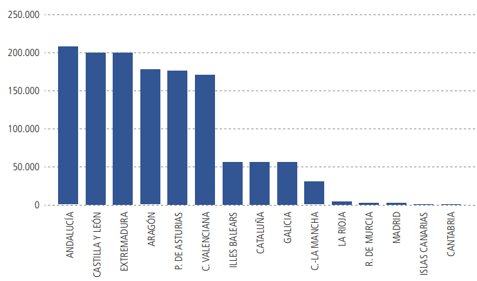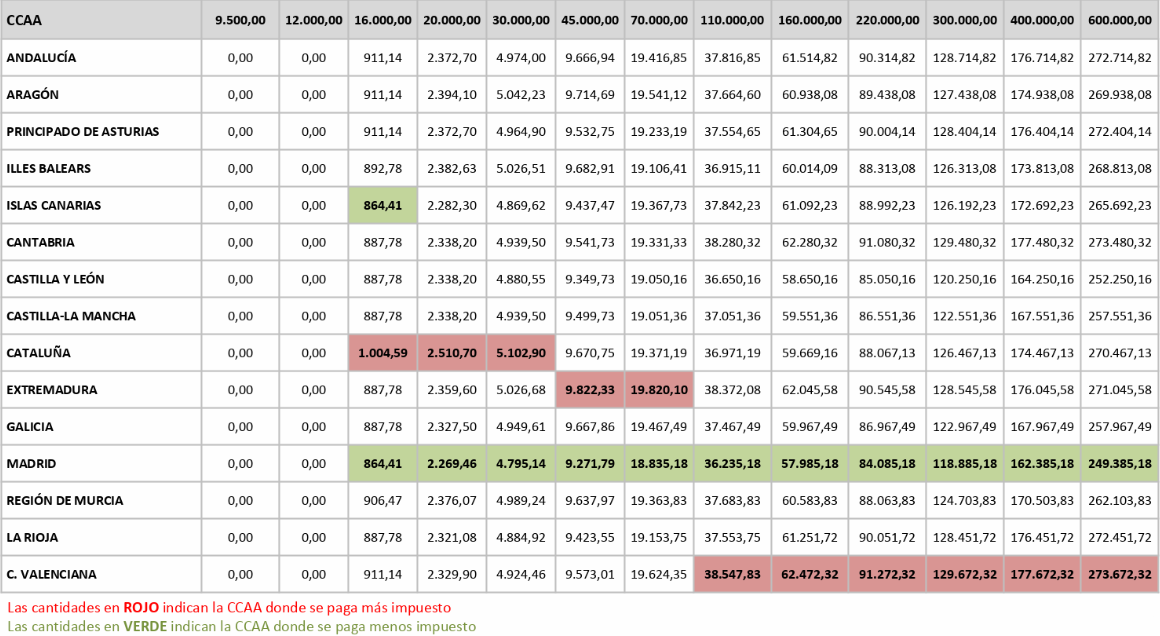 En Donaciones, por su parte, siguiendo el mismo ejemplo, un madrileño abonaría unos 2.000 euros en comparación con los casi 210.000 euros de un andaluz.